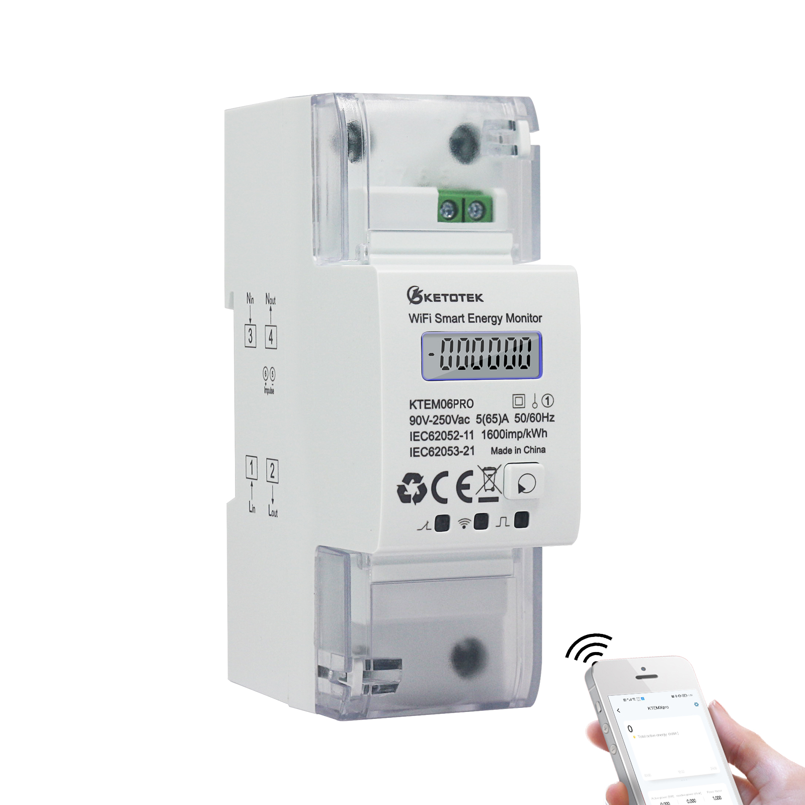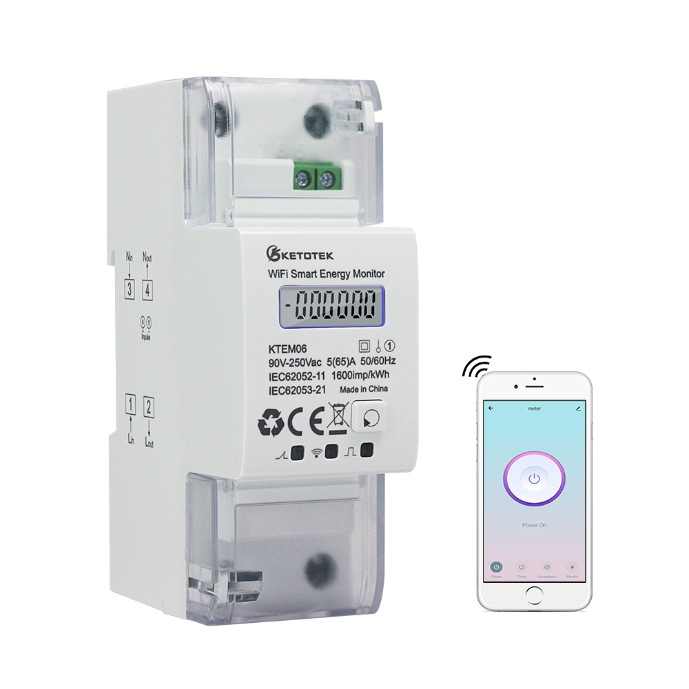 KETOTEK WiFi Power Monitors Bidirectional KWh Meter DIN-Rail Electric Meter Smart Single Phase Energy Monitor Tuya/Smart Life App Remote Monitoring 5(65)A 90-250V
